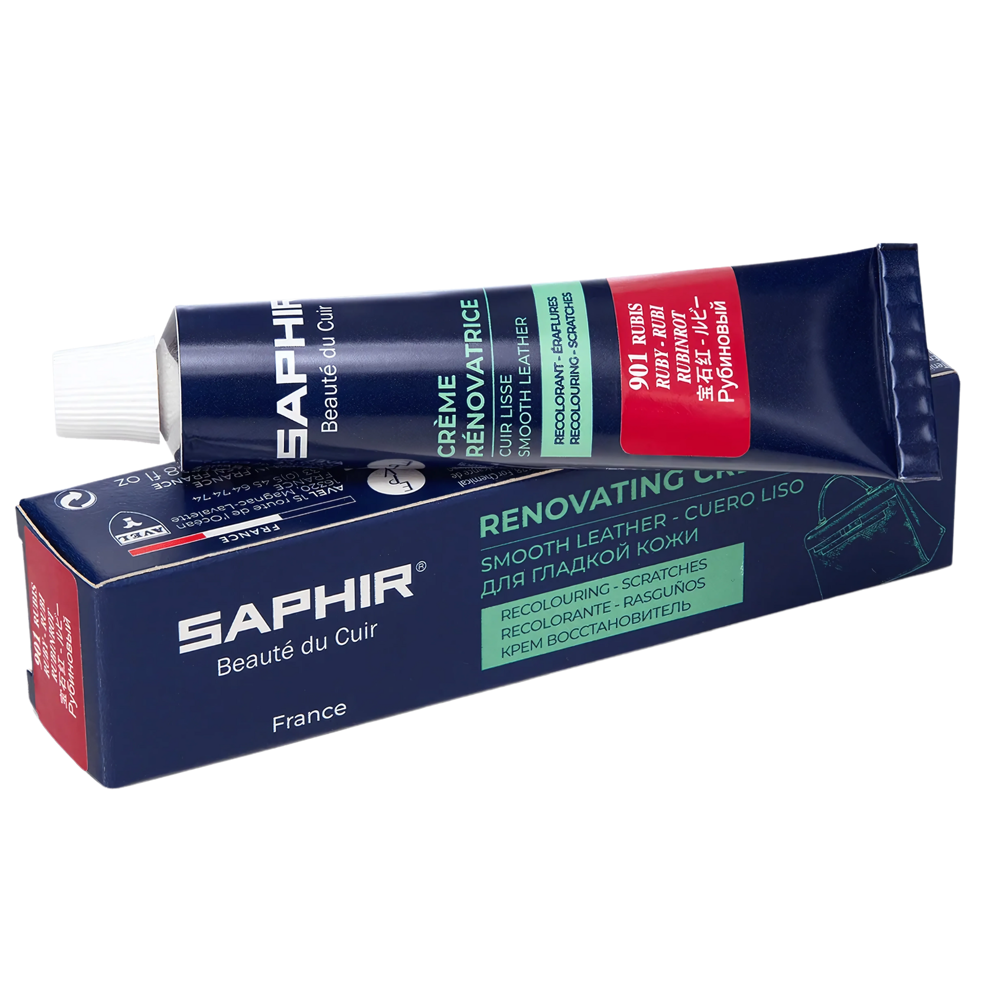 Saphir Crema Renovadora, o Crème Renovatrice, recupera el cuero de rayaduras, marcas de cigarro y otros daños que marcan el cuero. Su concentración alta de pigmento basados en resinas, permite recuperar la suavidad y coloración del cuero.